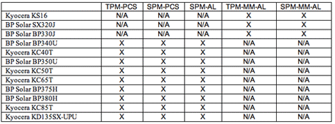 Solar Module Mounting Structures STC uses top-of-pole (TPM) and side-of-pole (SPM) mounting structures. Smaller modules (16W-30W) use an aluminum bracket (mount) called a minimount (MM-AL). Larger modules (40W-135W) use either a TPM-PCS, SPM-PCS, or a SPM-AL mount. Mounting structures come in powder coated steel (PCS) and Aluminum (AL). Table shows different types: